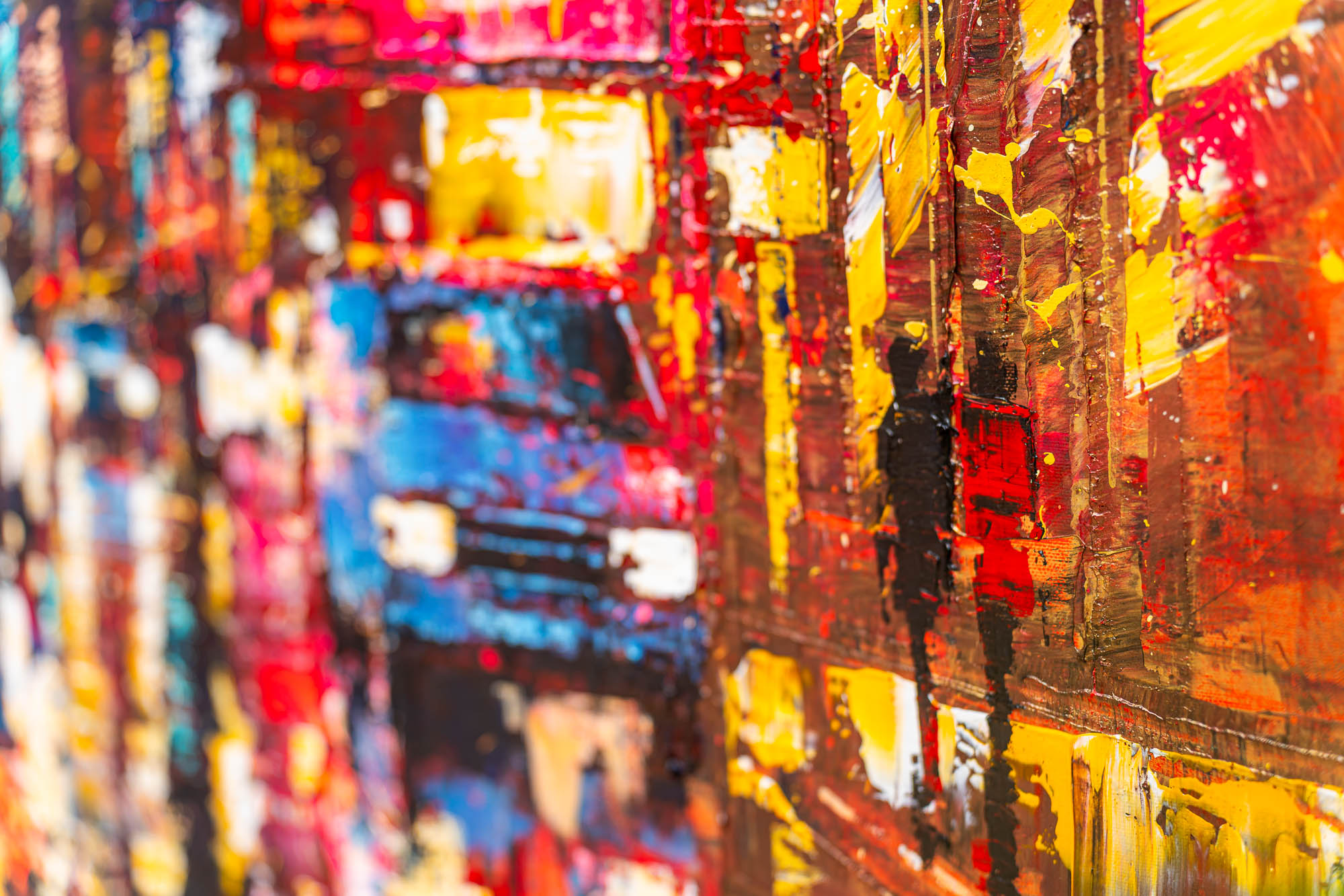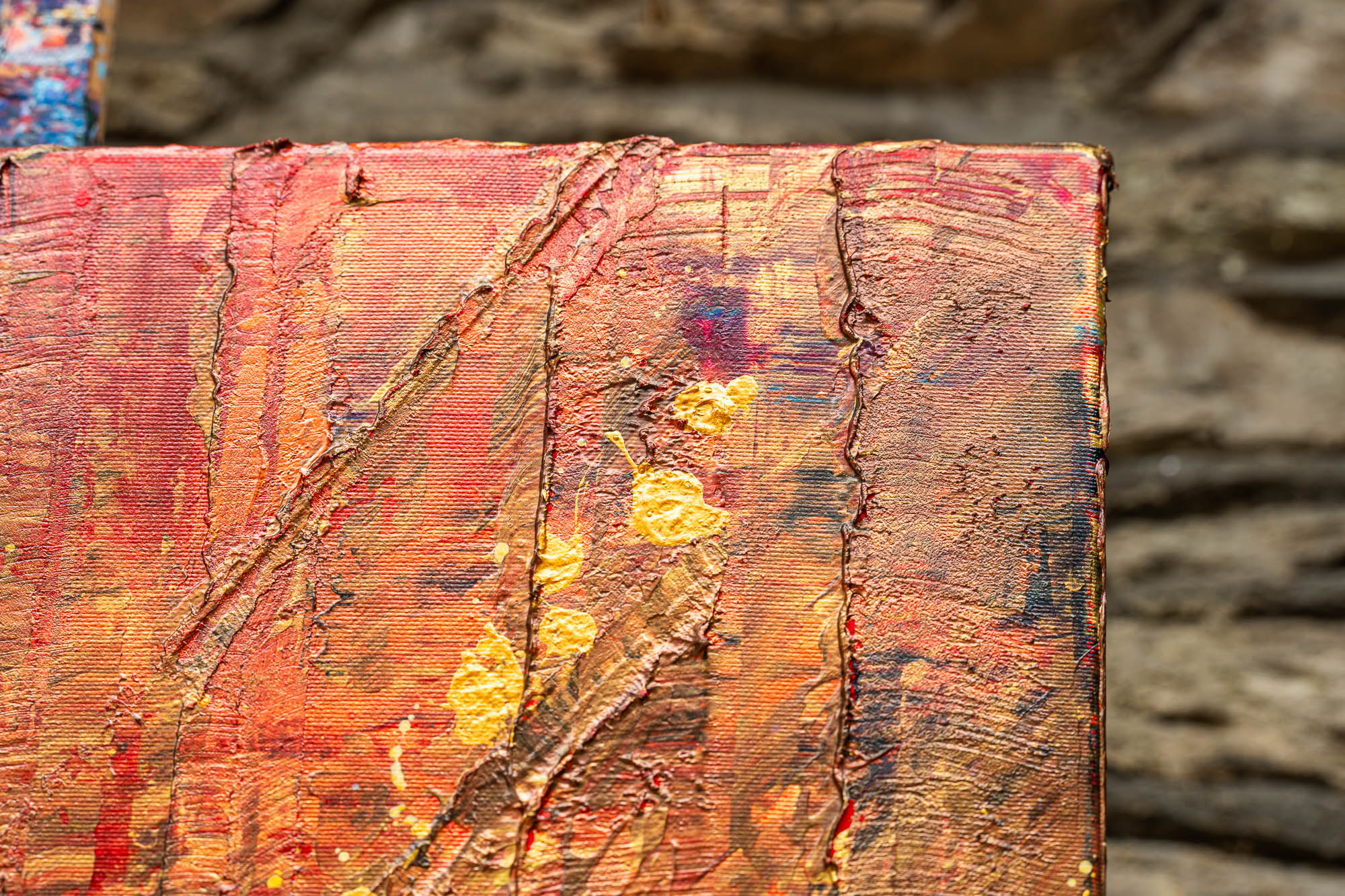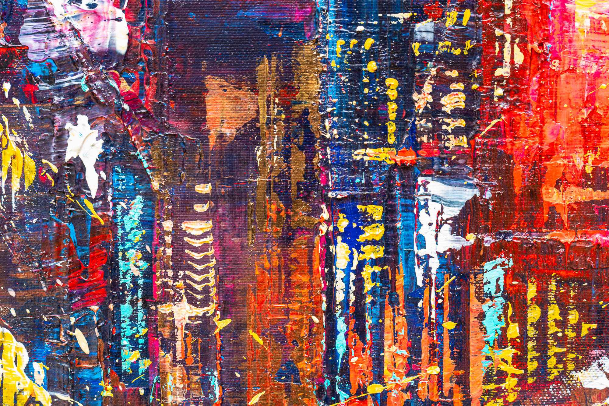 Glowing reds and molten metallics bring the streets of New York to life in this dramatic night scene. Layers of thick impasto texture and reflective colour capture the restless movement of Broadway, transforming the city’s light and rain into a symphony of motion and shine.