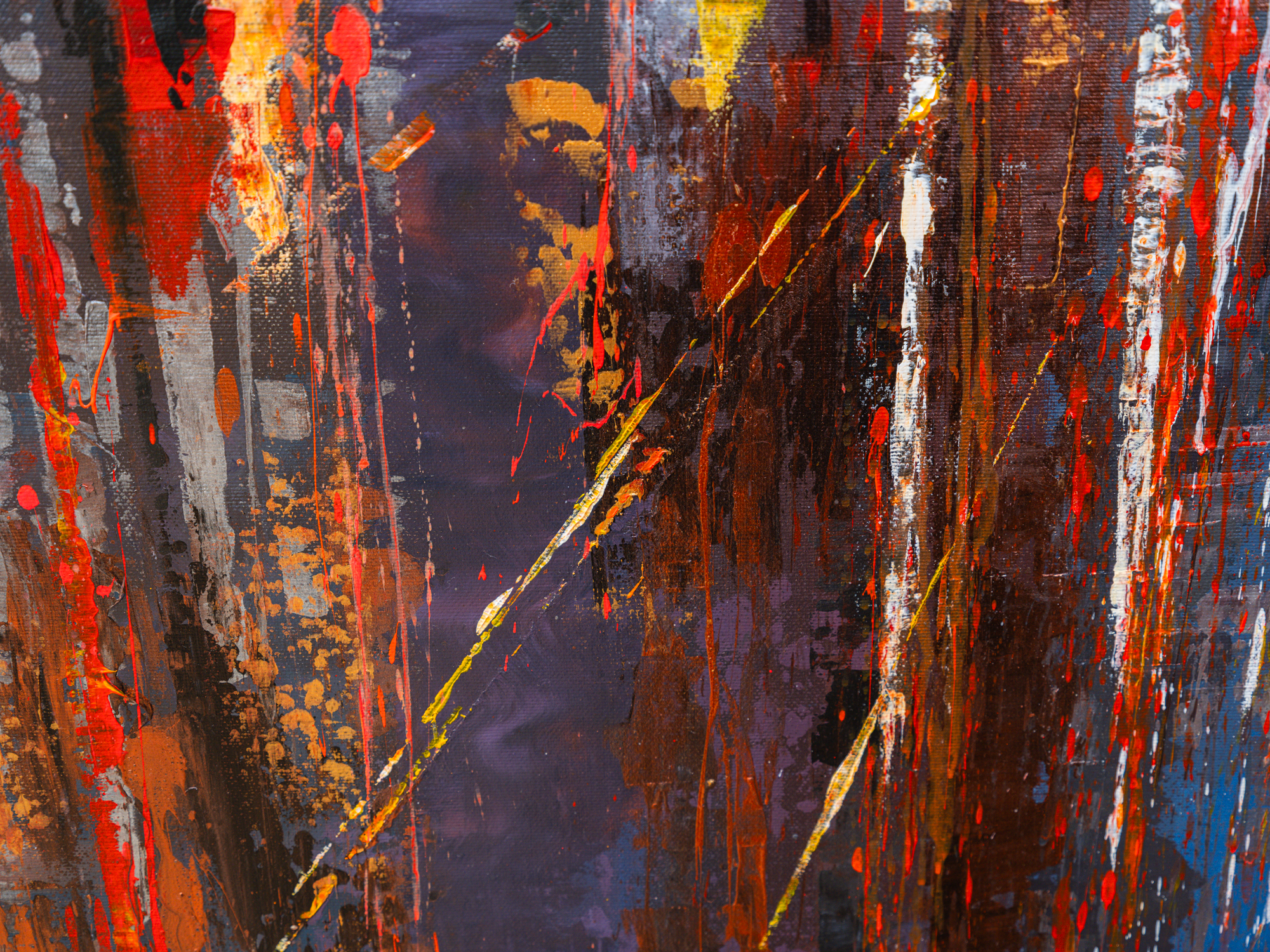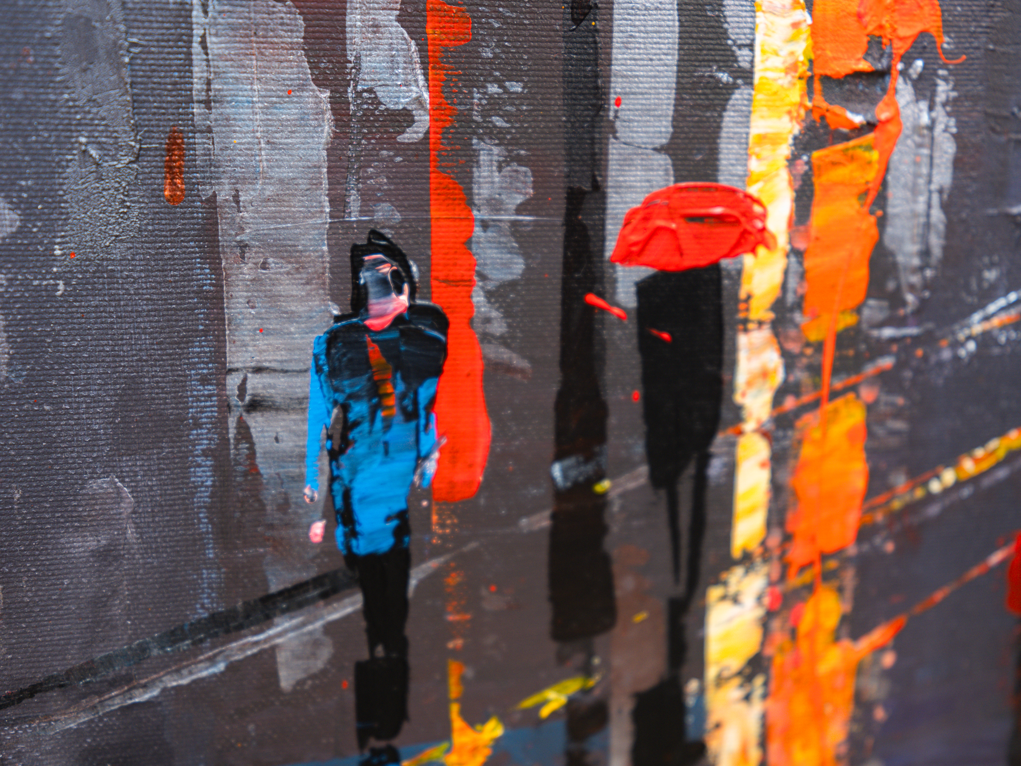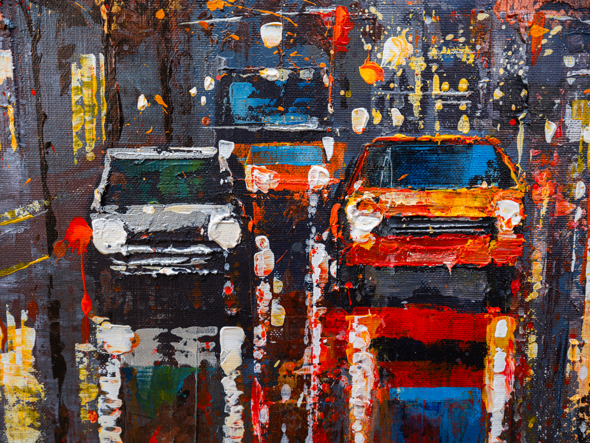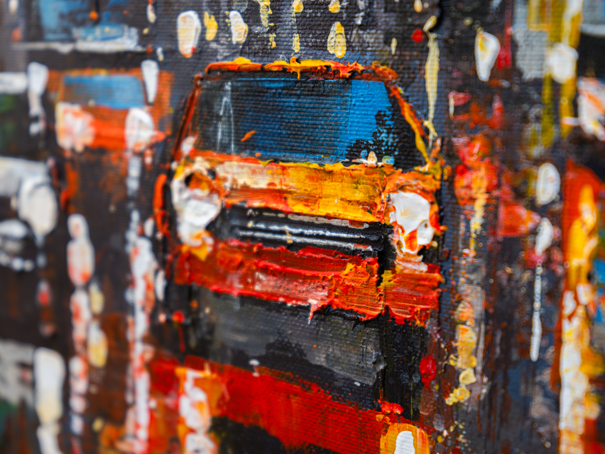 244 x 122 cm | 96 x 48 in [media]. Original mixed media on canvas, New York at dusk with the Chrysler Building and rain reflections.. New York Contemporary Art Original Painting by Contemporary Cityscape Artist Paul Kenton. Available to Purchase.