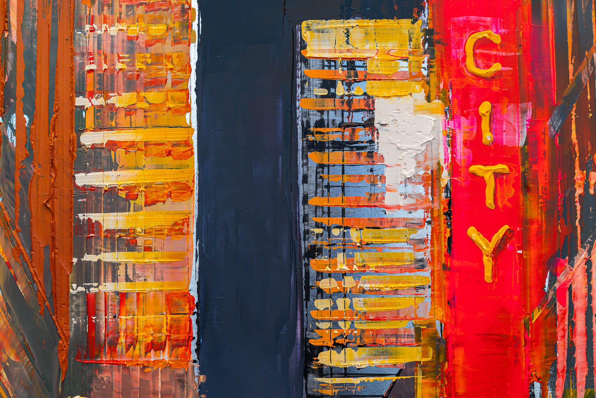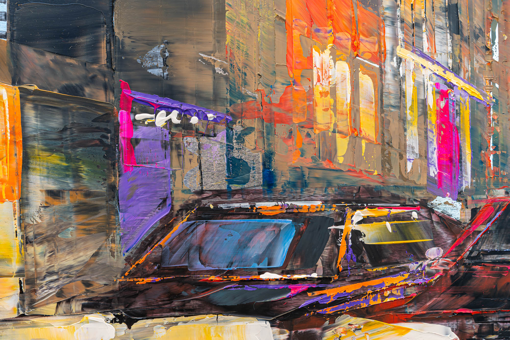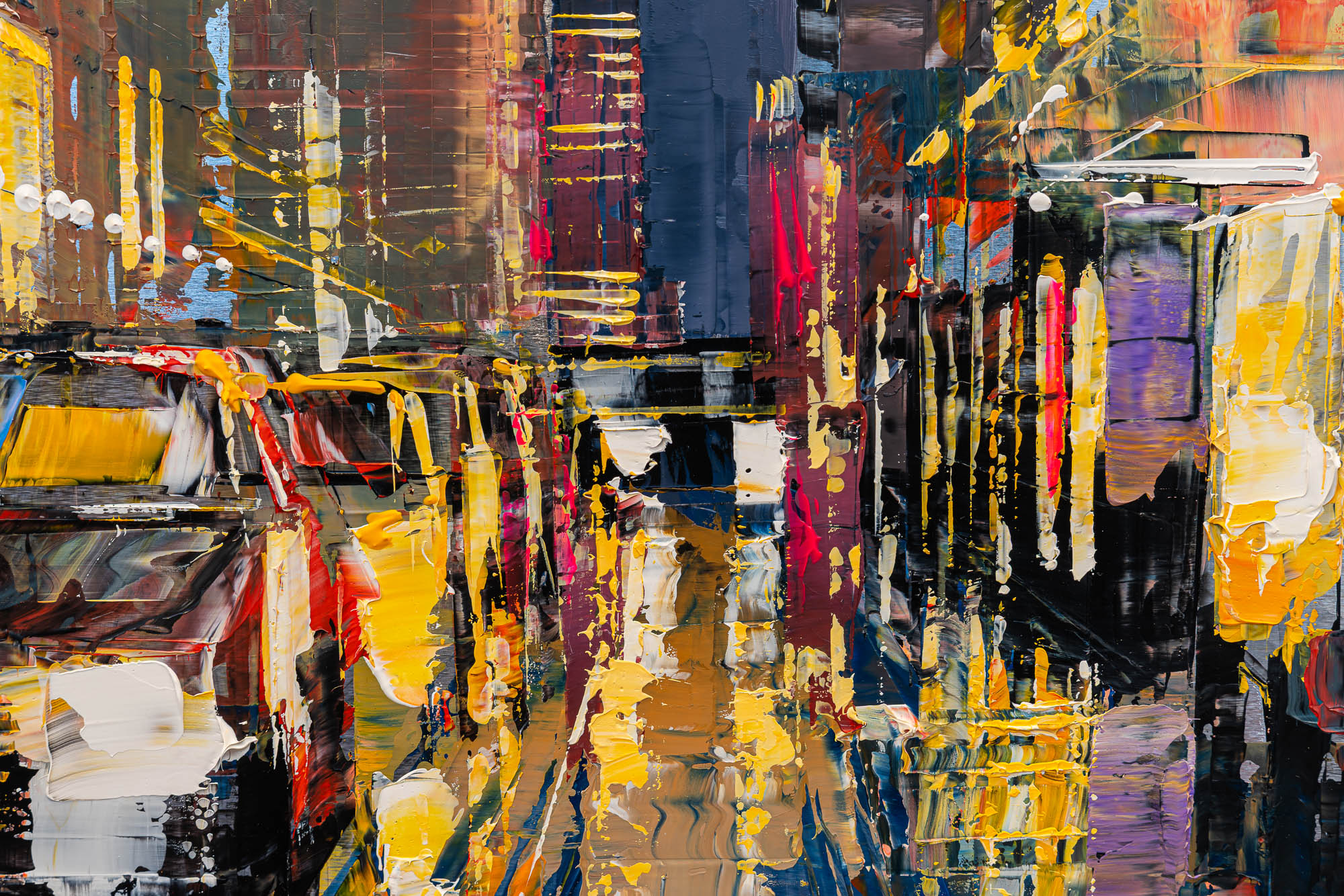 “Broadway Lights” is an Original New York Cityscape Painting by Paul Kenton. A neon-soaked vision of Broadway at night, with shimmering reflections and glowing colour.