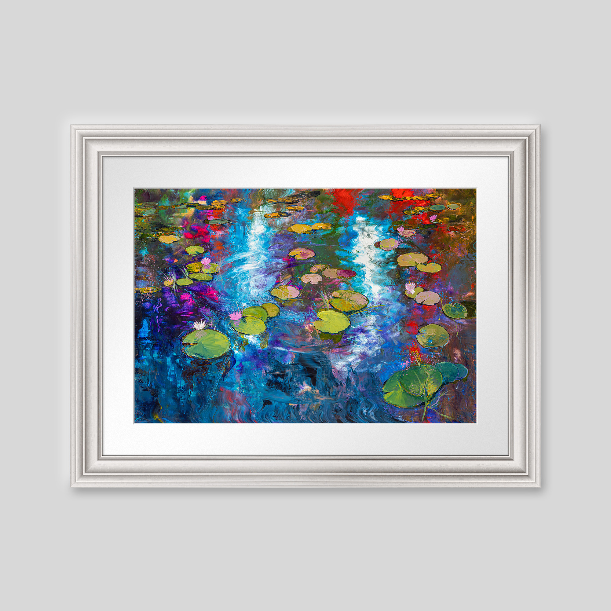 “Lily Light” is an Limited Edition Print of a Landscape Painting by Paul Kenton. A vivid, Monet-inspired study of light and reflection across a lily pond.