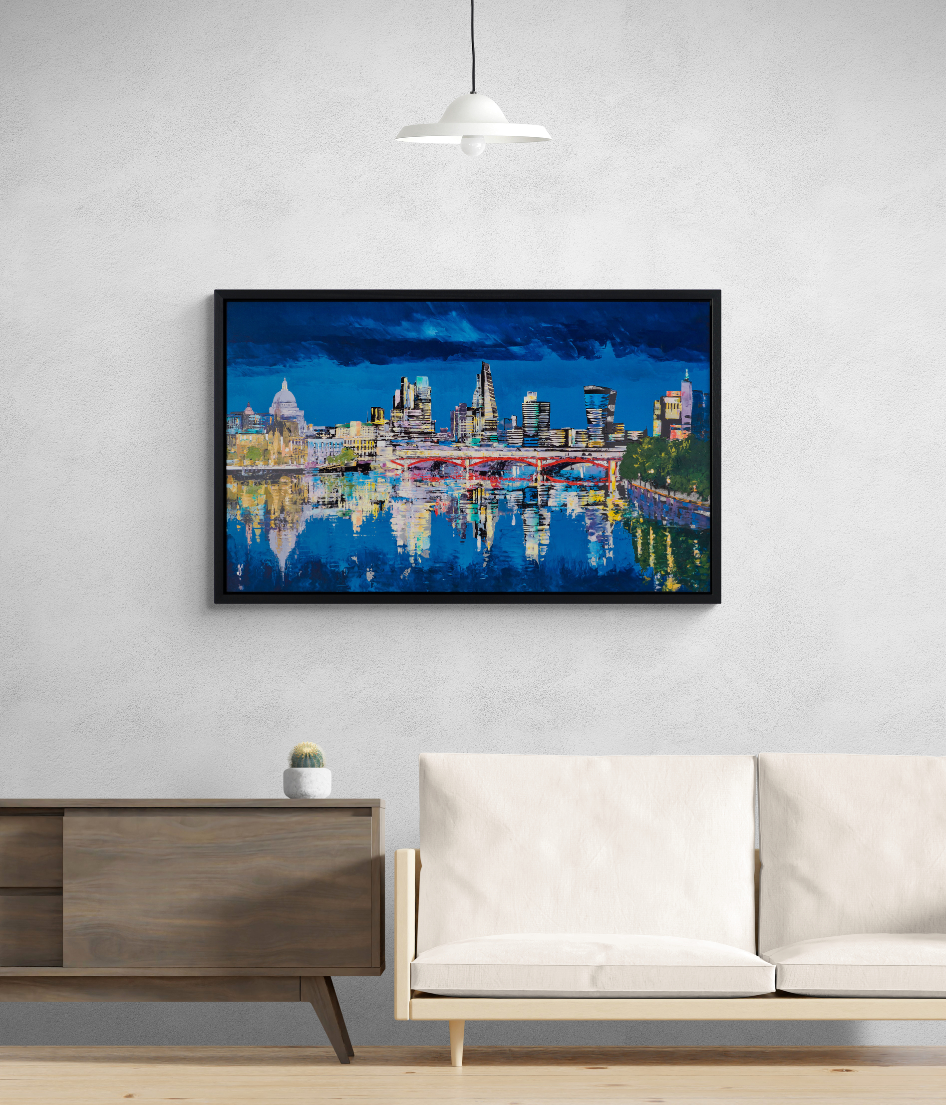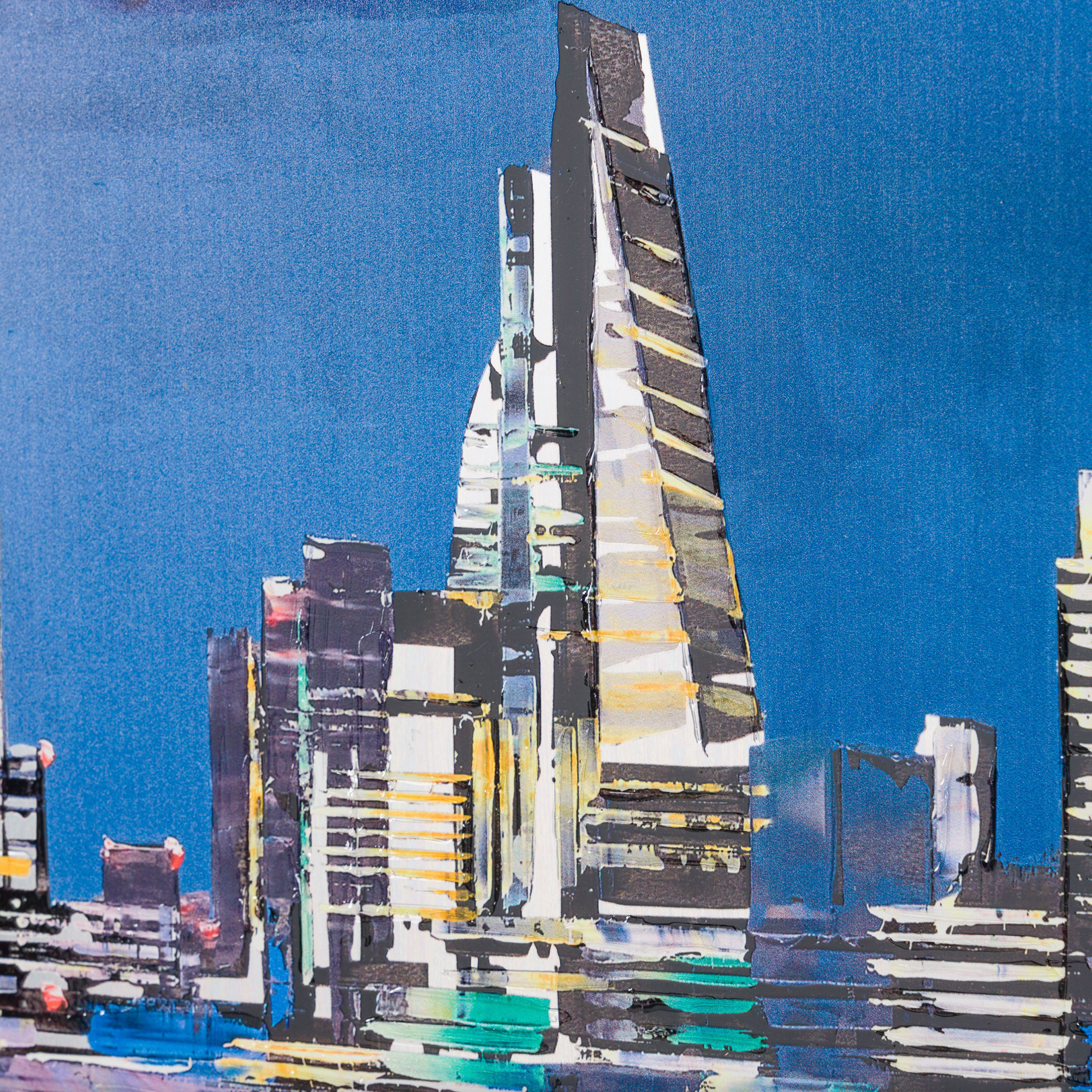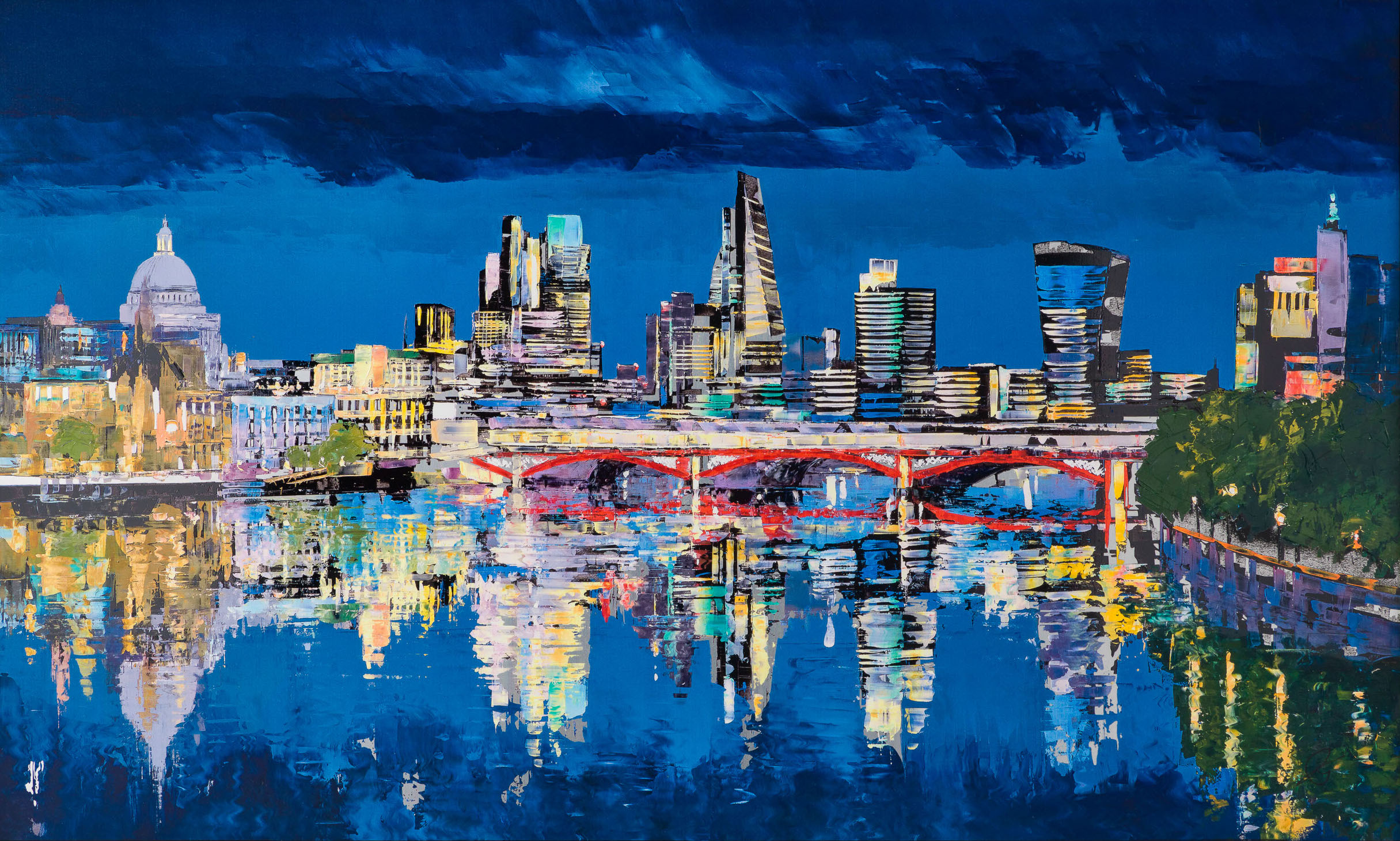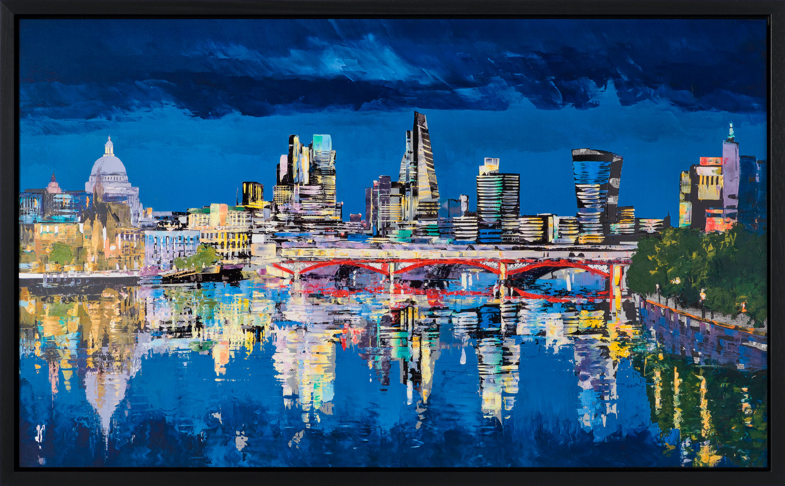 This signed limited-edition artwork is simultaneously full of colour and darkness. Using sharp and colourful accents, Paul brings London to life. “London Illuminations” captures the majestic city of London, illuminated by glowing lights in a myriad of colours. Shimmering lights reflect on the still surface of the Thames, portraying a rare moment of calm in this lively capital.