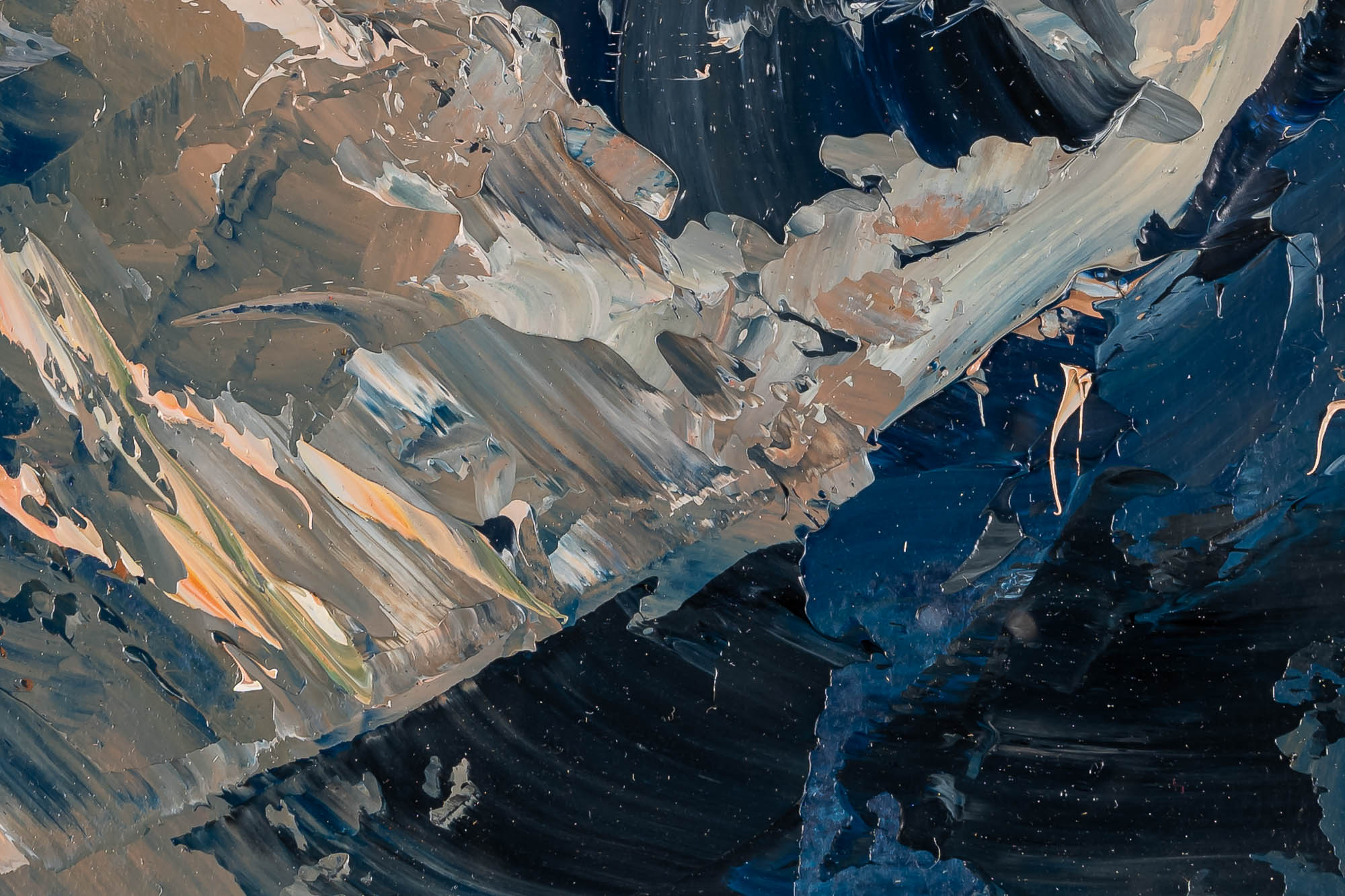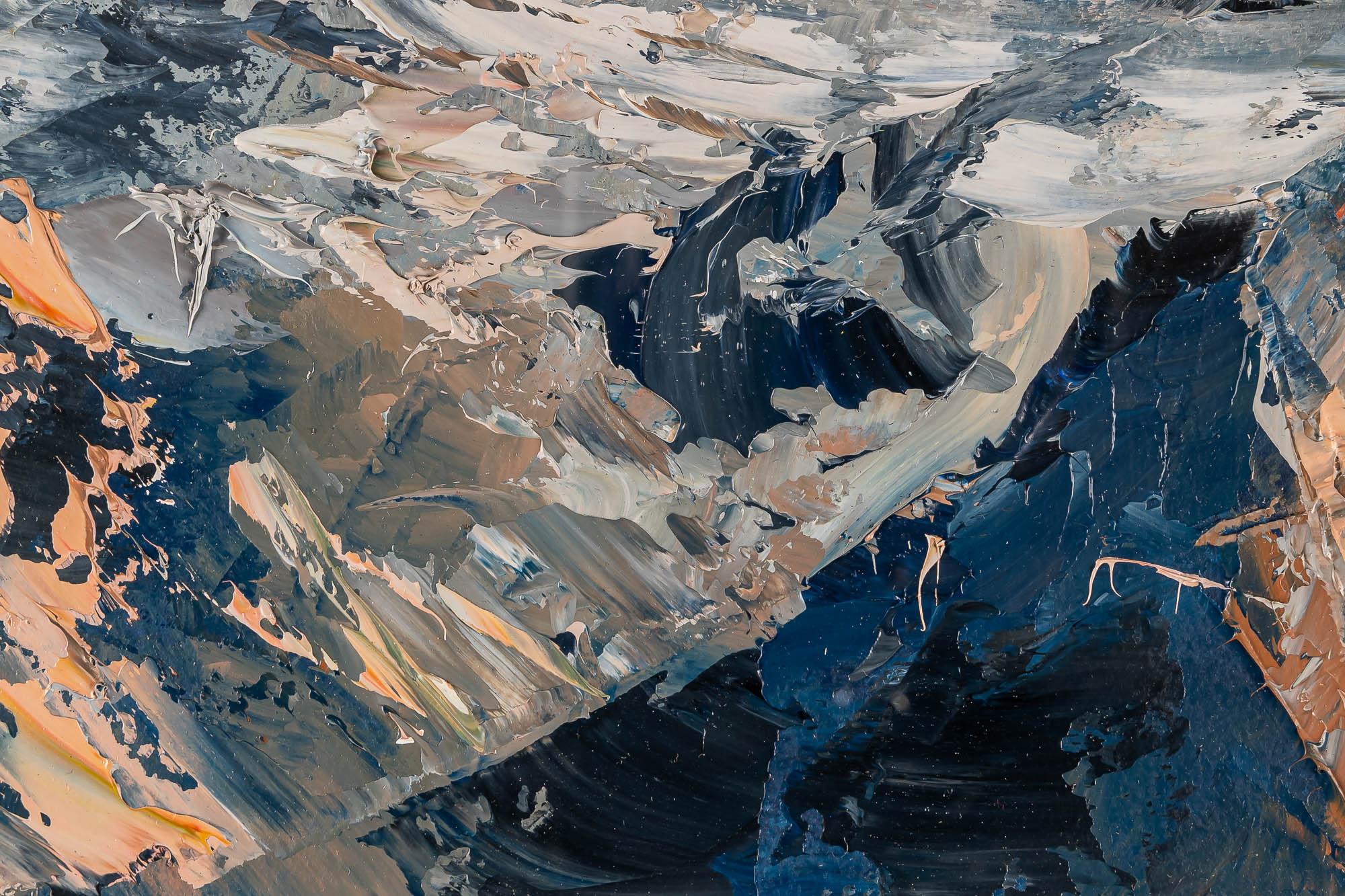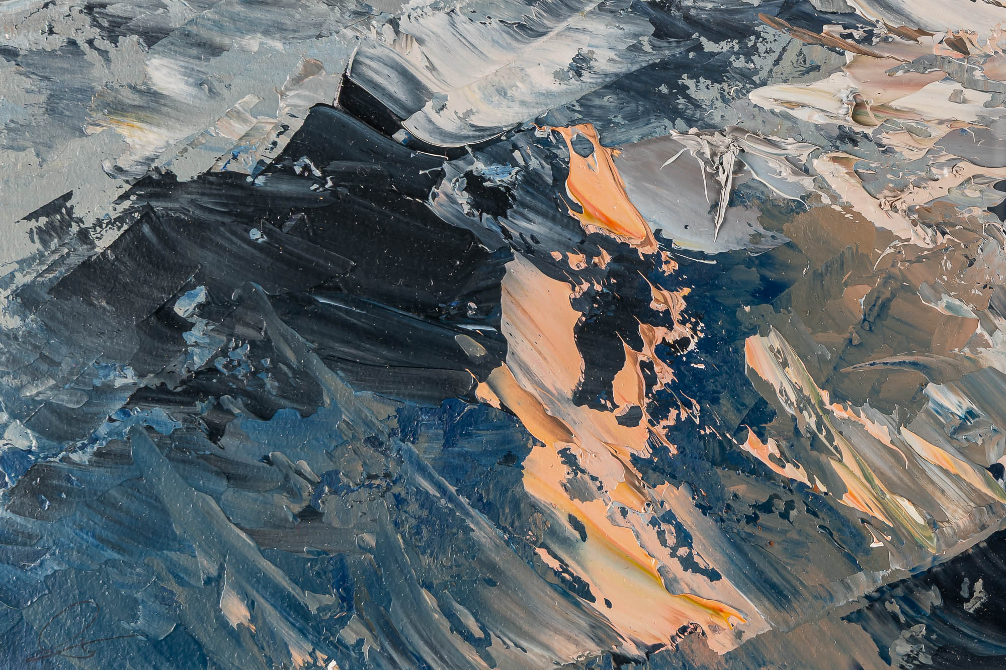Rugged Rhythms is a bold and expressive plein air study, painted by Paul in the Alps during his 2024 travels. Working in oils on paper, Paul captured the raw drama of the mountains with broad, instinctive strokes and a palette alive with earth tones, deep blues, and flashes of snowlight. The unusually wide format adds a cinematic sweep, drawing the eye across jagged peaks and shadowed valleys, all distilled into a compact yet powerful composition.