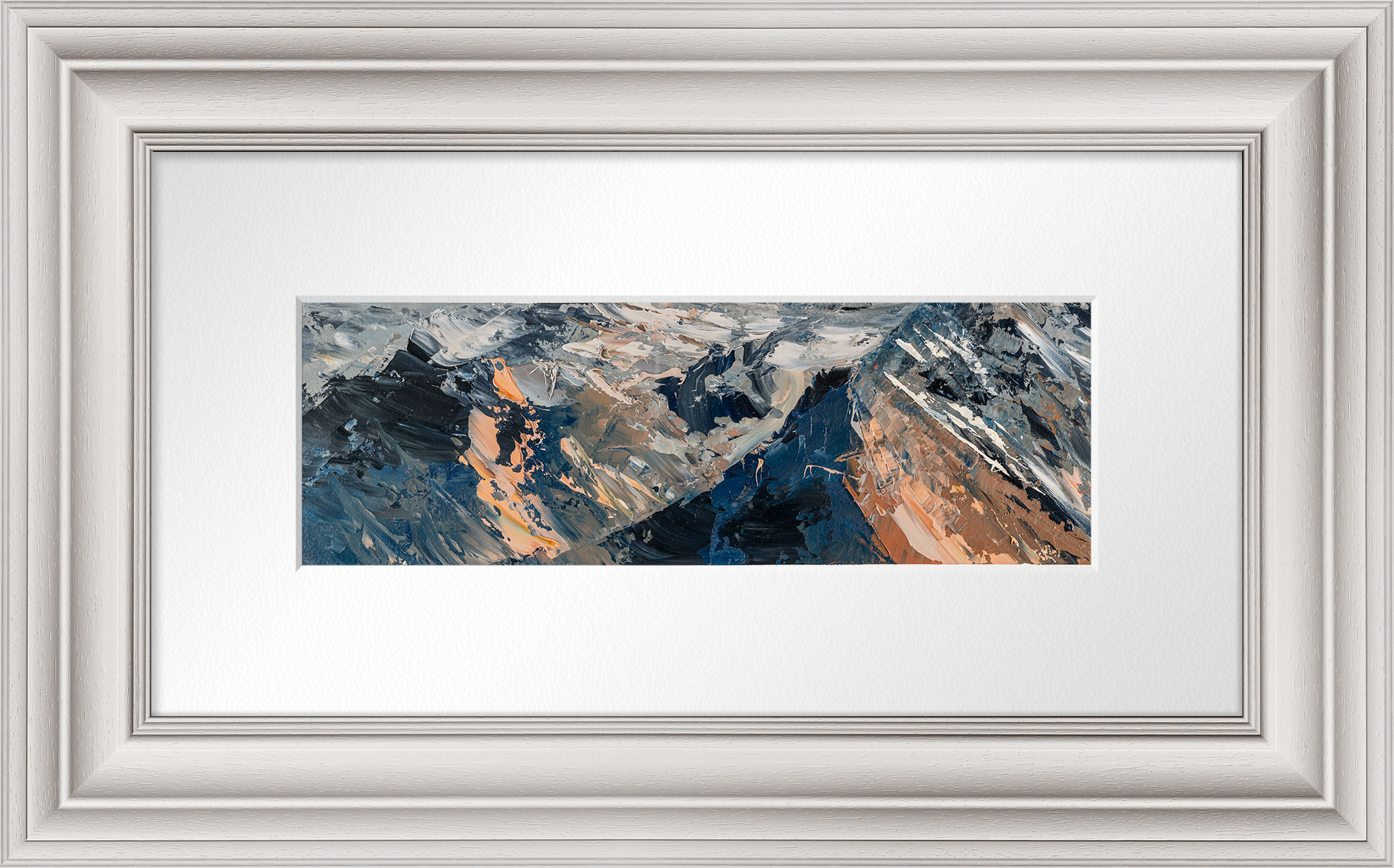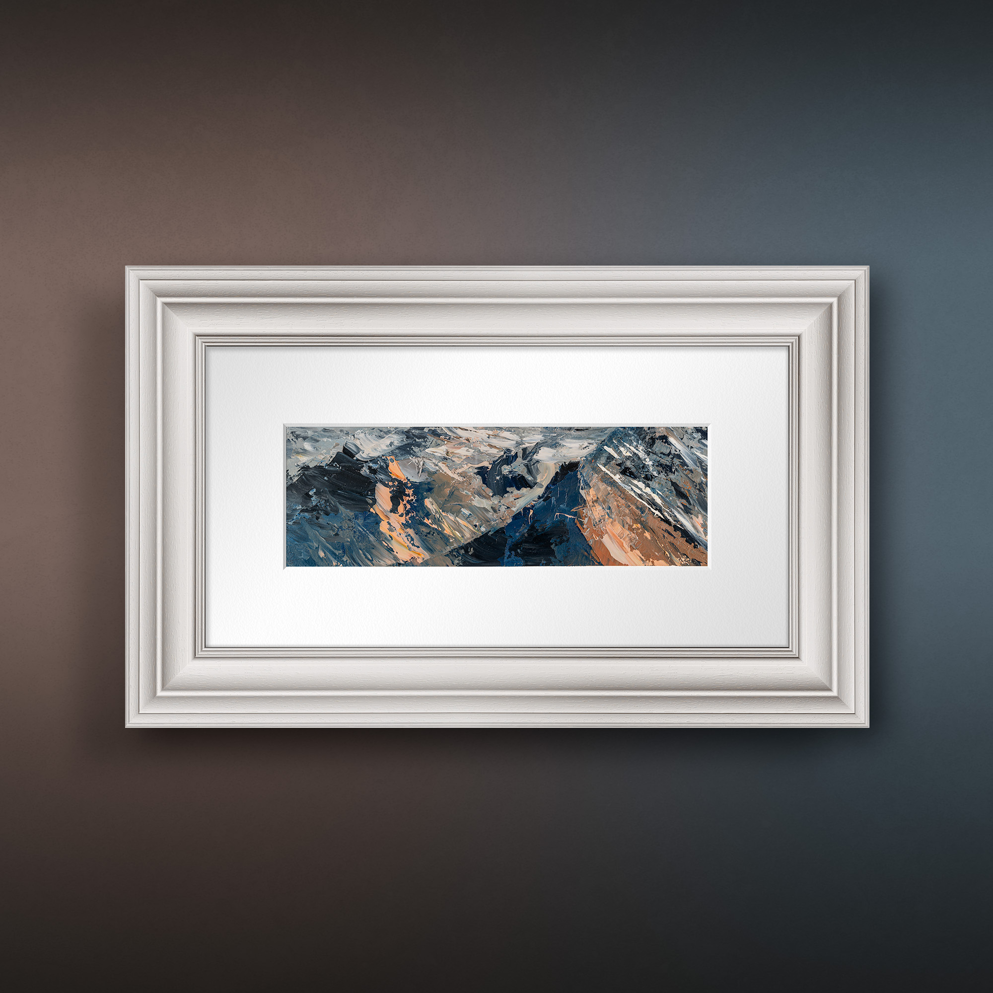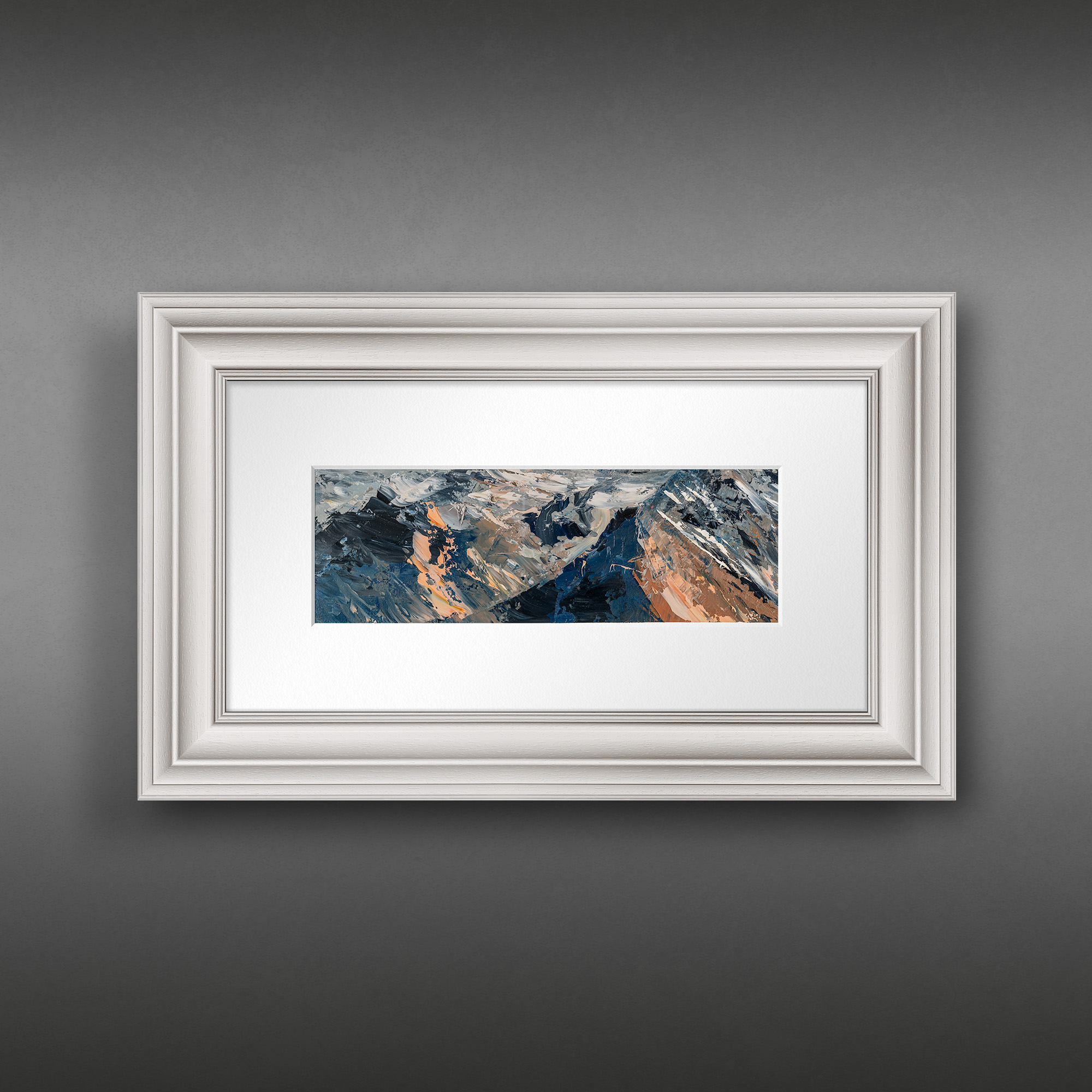 12 x 29 cm | 4.75 x 11.5 in [media]. A compact yet powerful plein air oil study of the Alps in 2024.. Mountainscape Contemporary Art Original Painting by Contemporary Cityscape Artist Paul Kenton. Available to Purchase.