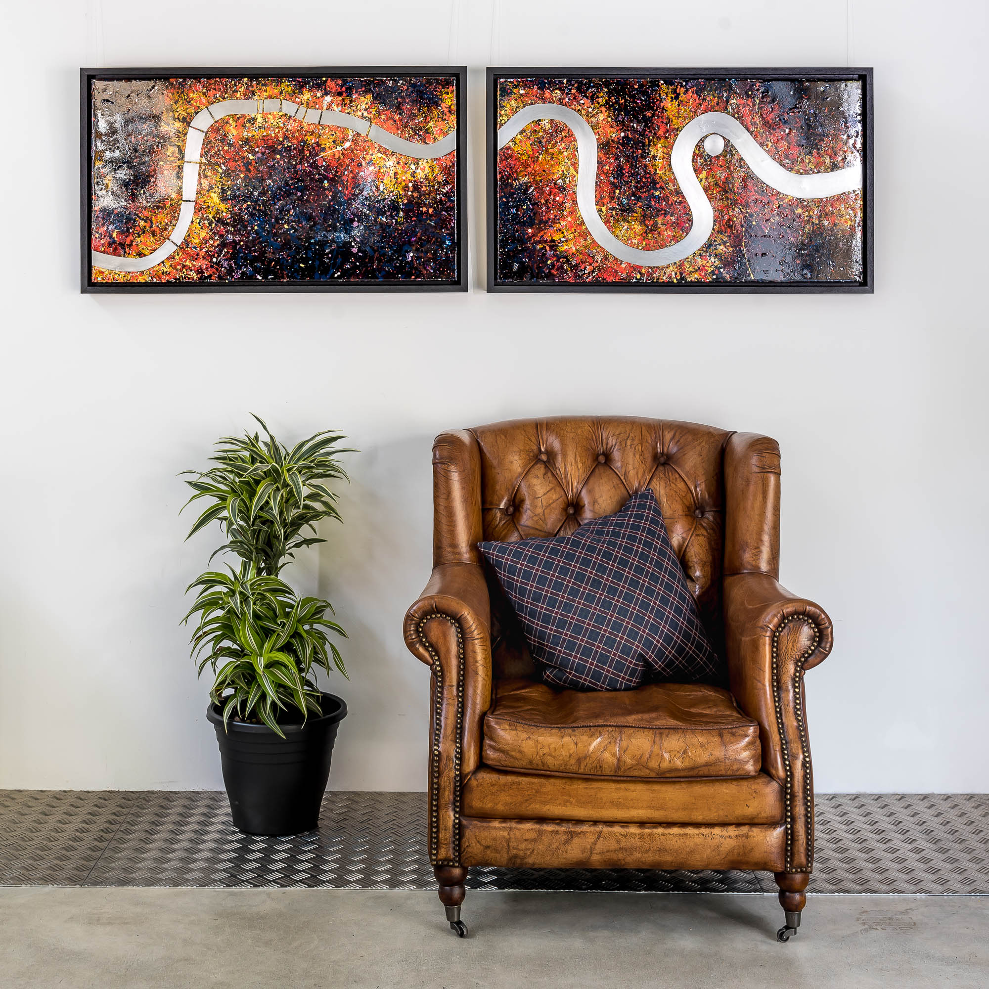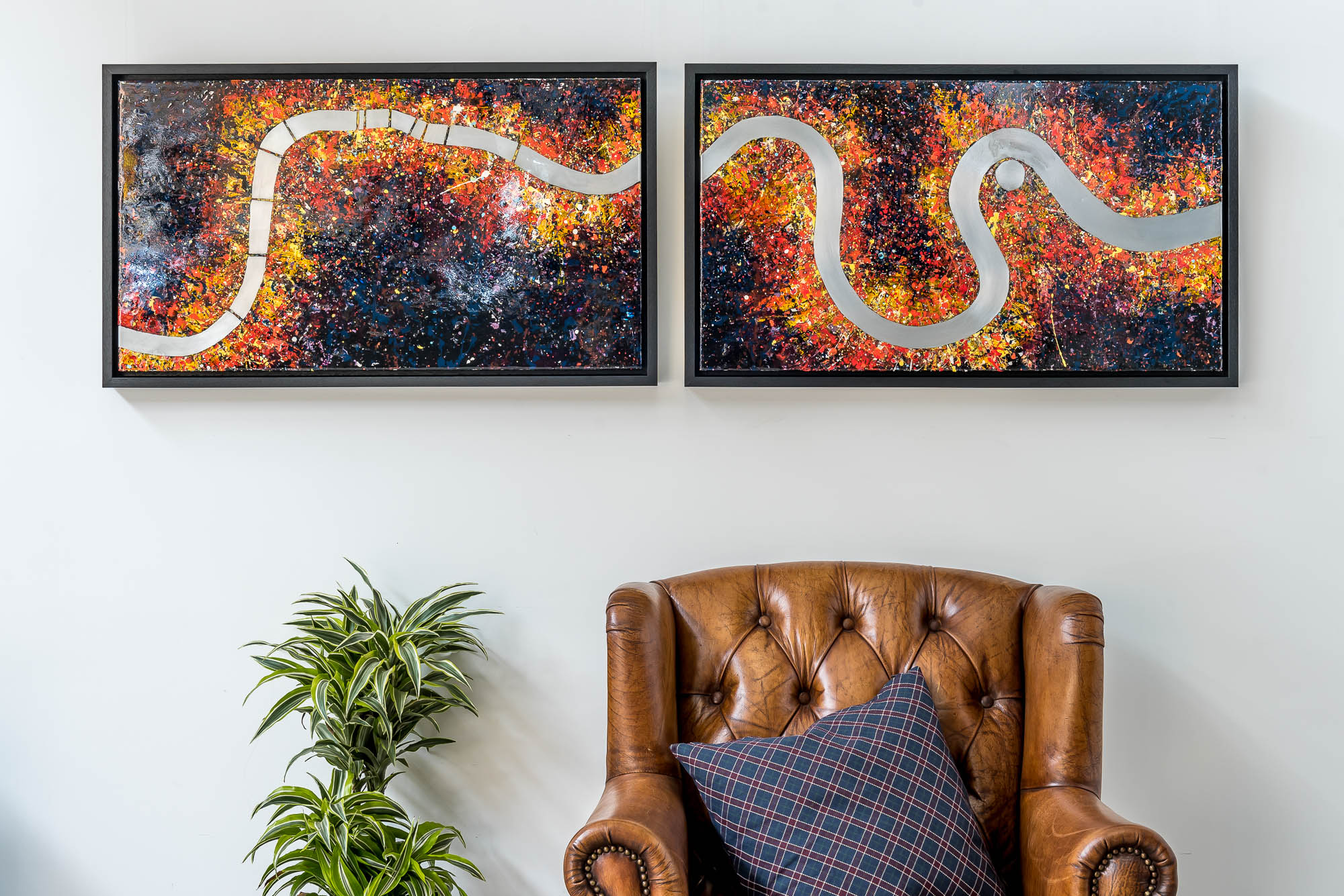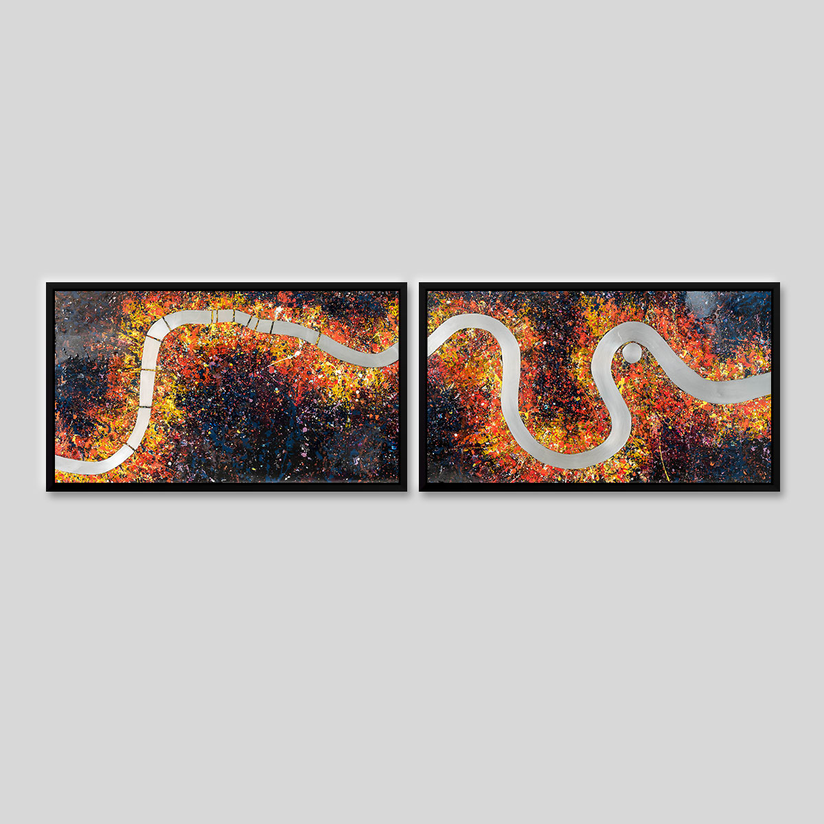 Painted onto two aluminium panels, Bifurcated London is a unique statement piece with the flexibility to be displayed closely aligned or with more breathing space in between.
